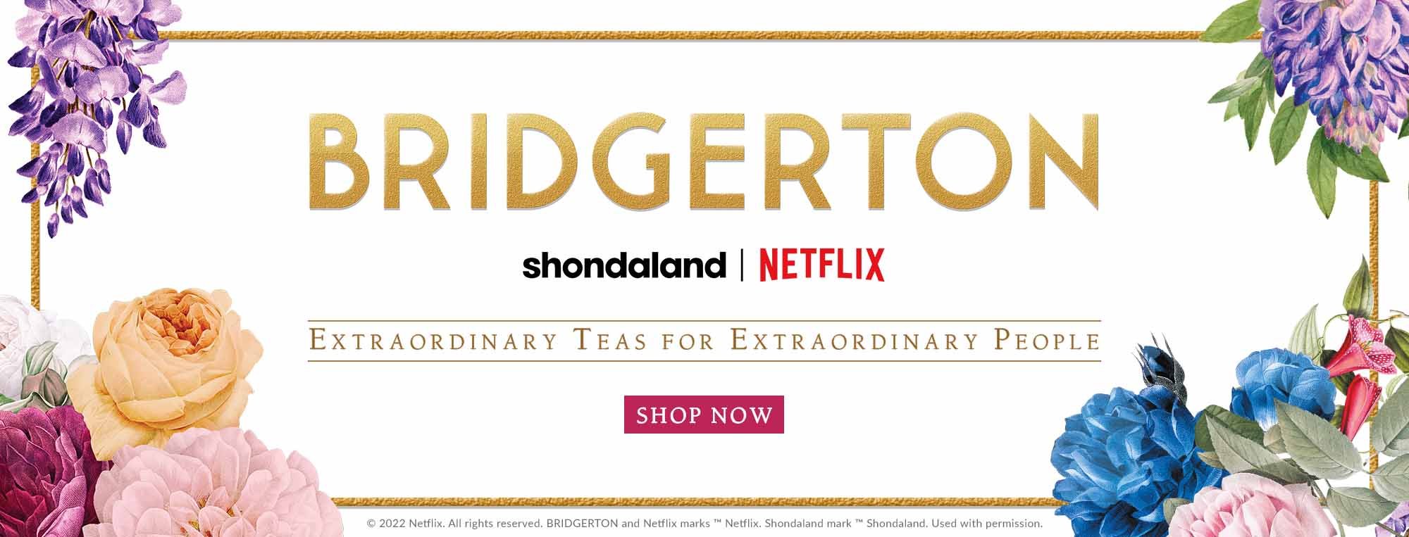 Specialty tea blends inspired by Shondaland’s Netflix series based on Julia Quinn’s best-selling romance novel of the same name.