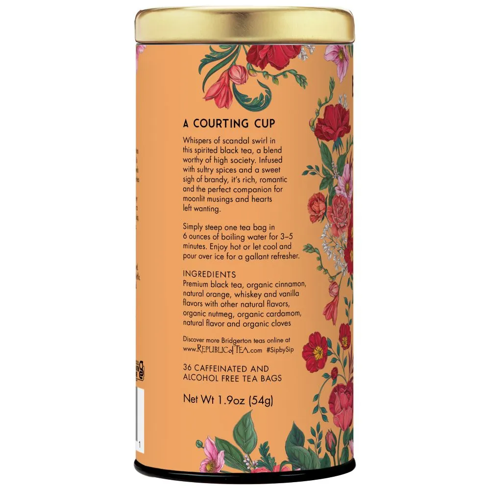 Whispers of scandal swirl in this spirited black tea, a blend worthy of high society. Infused with sultry spices and a sweet sigh of brandy, it's rich, romantic and the perfect companion for moonlit musings and hearts left wanting.