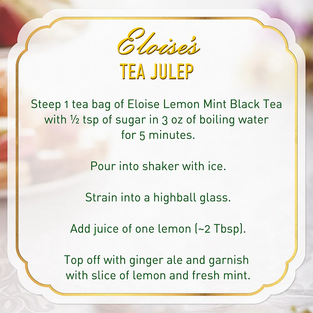 Not all teas are traditional. This lively, outspoken black tea is infused with refreshing mint for the clearest of minds and zesty lemon for those who dare to dream. Sip this cup with the utmost confidence and aspire to a life out of the ordinary. Indulge in a warm cup of lemon mint tea while watching Eloise chart her own course within the marriage market.