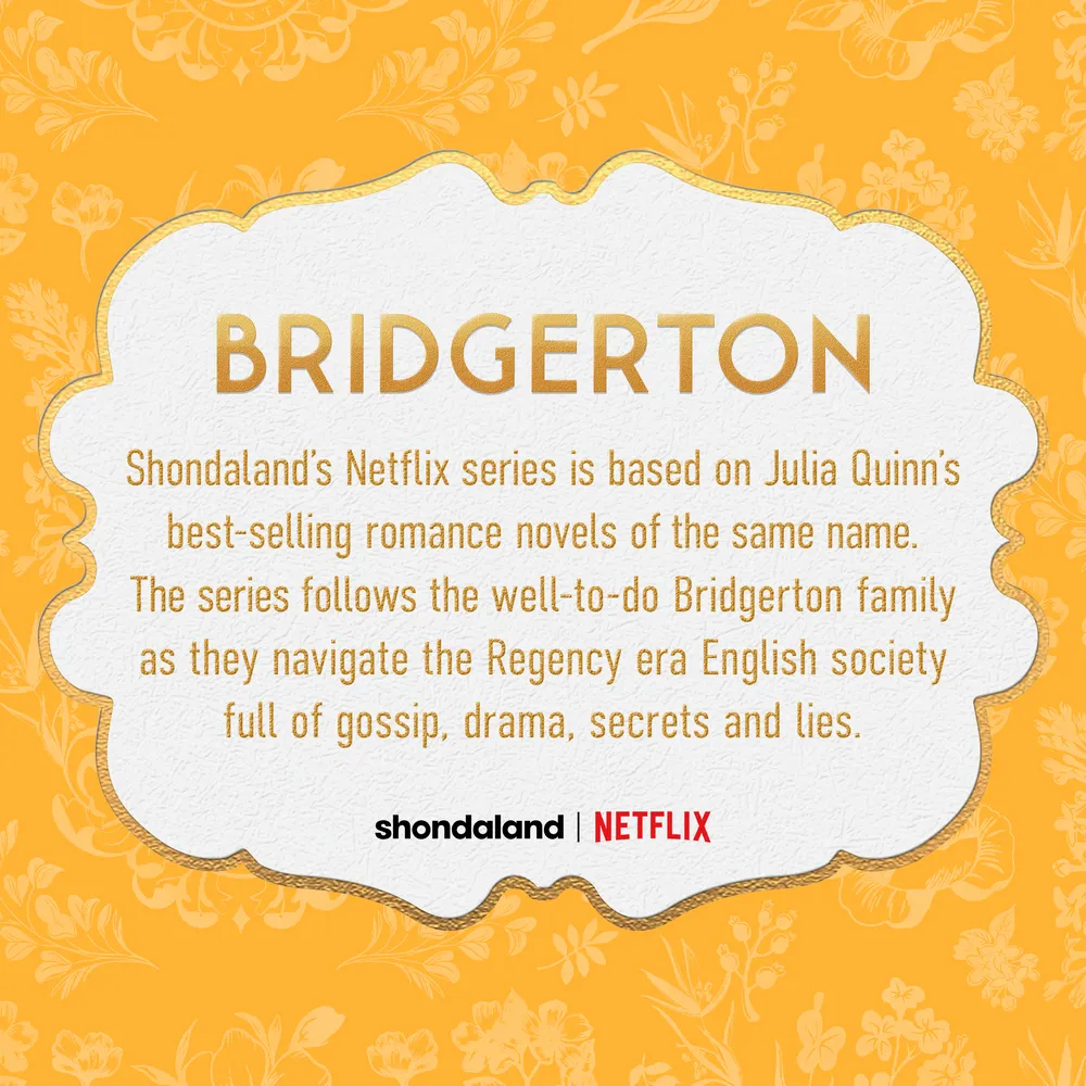 Shondaland's Netflix series is based on Julia Quinn's best-selling romance novels of the same name. The series follows the well-to-do Bridgerton family as they navigate the Regency era English society full of gossip, drama, secrets and lies.