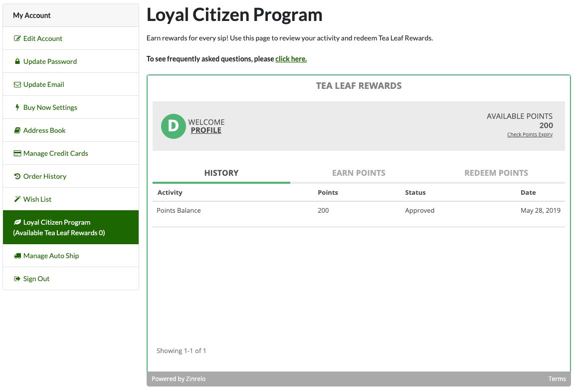 Please note, it may take up to 10 business days for Tea Leaf Rewards earned by referring a new Citizen to process and update in your account.