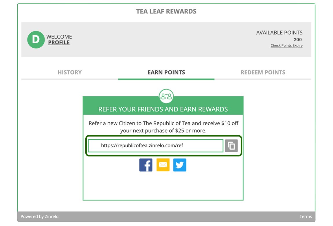 - Making a purchase: Earn 10 Tea Leaf Rewards for every $1 spent at www.republicoftea.com*