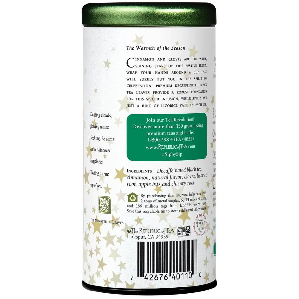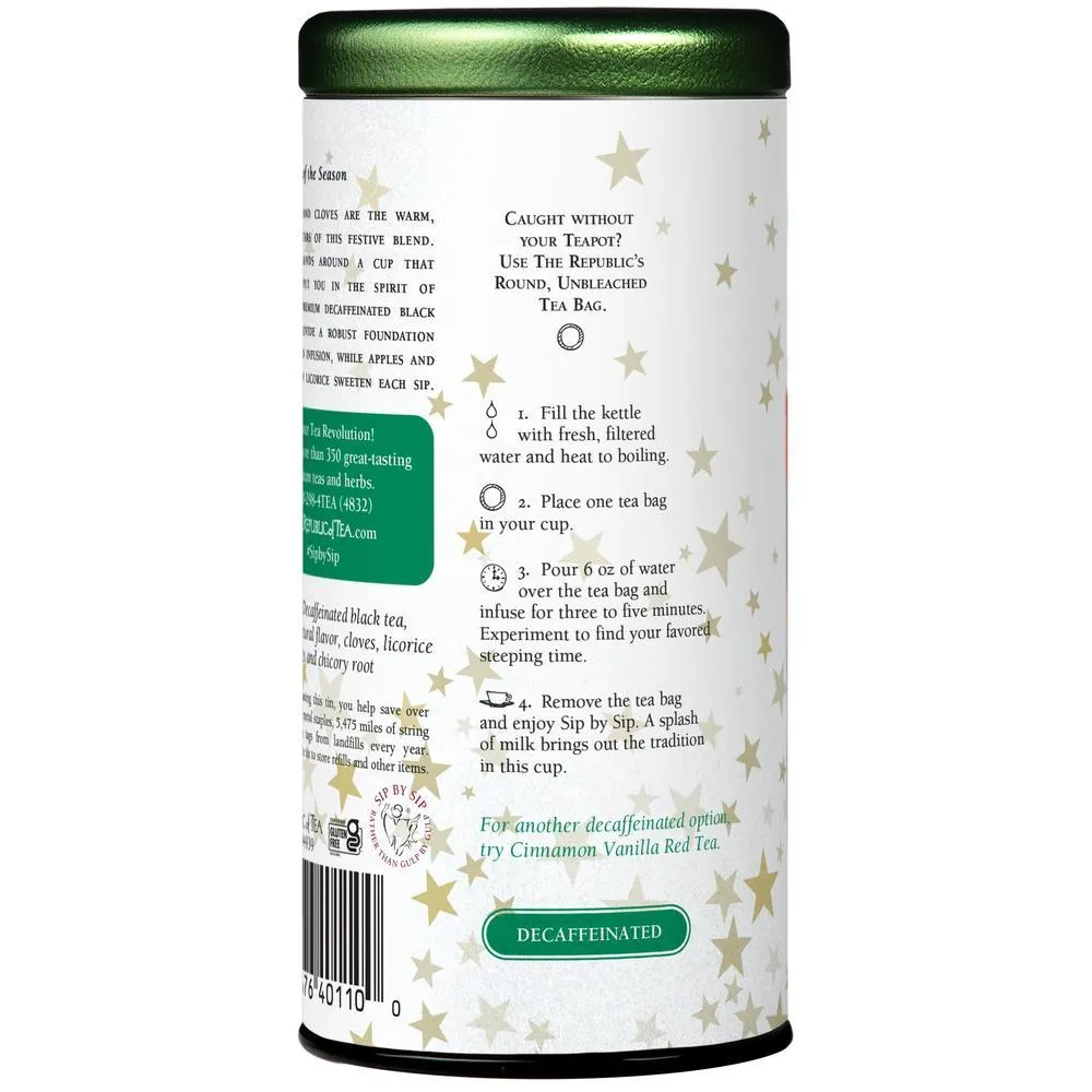 Cinnamon and cloves are the warm shining stars of this limited-edition festive blend. Wrap your hands around a cup that will surely put you in the spirit of celebration. Premium decaffeinated black tea leaves provide a robust foundation for this spiced infusion, while apples and just a hint of licorice sweeten each sip. Comfort and Joy features the best flavors of the holidays: cinnamon, cloves, apples, and licorice root blended with fine black tea.