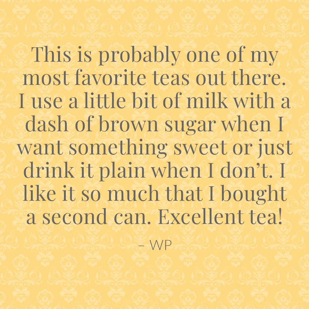 This decadent dessert tea has the homemade flavors of vanilla sponge cake drizzled with rich caramel sauce. The full-bodied base of premium black tea lends itself well to a splash of milk, making it a perfect afternoon tea to partner with puddings, scones and shortbread.