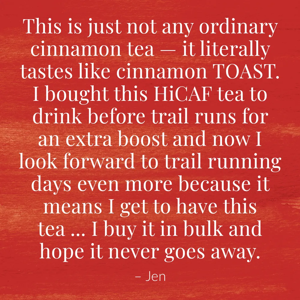 HiCAF® Cinnamon Toast Black Tea contains 116mg of caffeine per 6 oz cup.