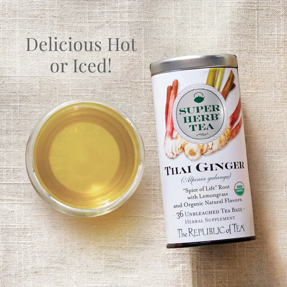 Galangal root or "Thai Ginger" is a common ingredient in Thai soups and curries. It is very similar to common ginger but has a slight lemony flavor and floral aroma. We have added lemongrass to accentuate the citrus for a sweet finish. Like ginger, galangal has been used for thousands of years in Asia to help with digestion, nausea and upset stomachs.*