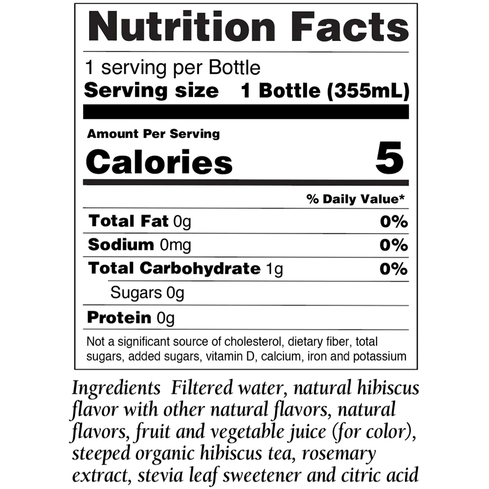 Filtered water, natural hibiscus flavor with other natural flavors, natural flavors, fruit and vegetable juice (for color), steeped organic hibiscus tea, rosemary extract, stevia leaf sweetener and citric acid