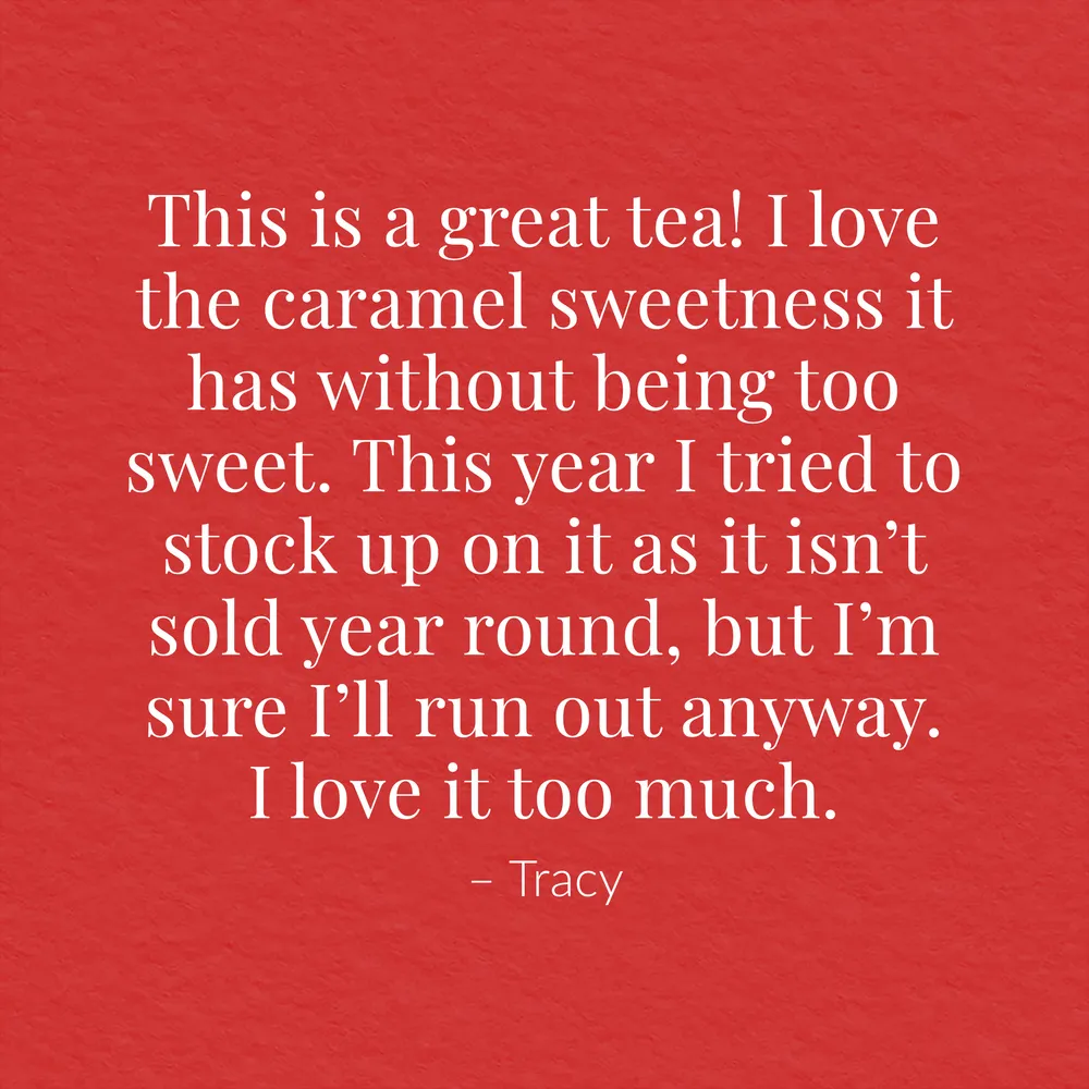 Have yourself a merry little cup of tea with this robust blend of creamy vanilla, aromatic cardamom and premium black tea. Add a splash of milk to create a cup of festive crème brûlée! A great Christmas tea for tea lovers!