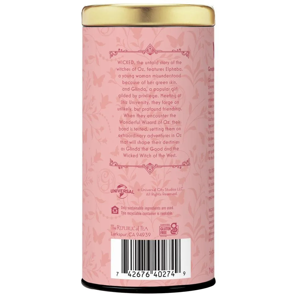 Glinda-fied and positively gleaming, this radiant herbal blend twirls with notes of strawberry, peach, and vanilla, kissed by rosy petals that float like a bubble in your cup. Each sip sparkles with good cheer –because kindness, much like tea, is most wonderfullest when shared! So steep up a little joy, sip something truly spellbinding and let a twinkle of goodness lift your spirits clear to the Emerald sky.